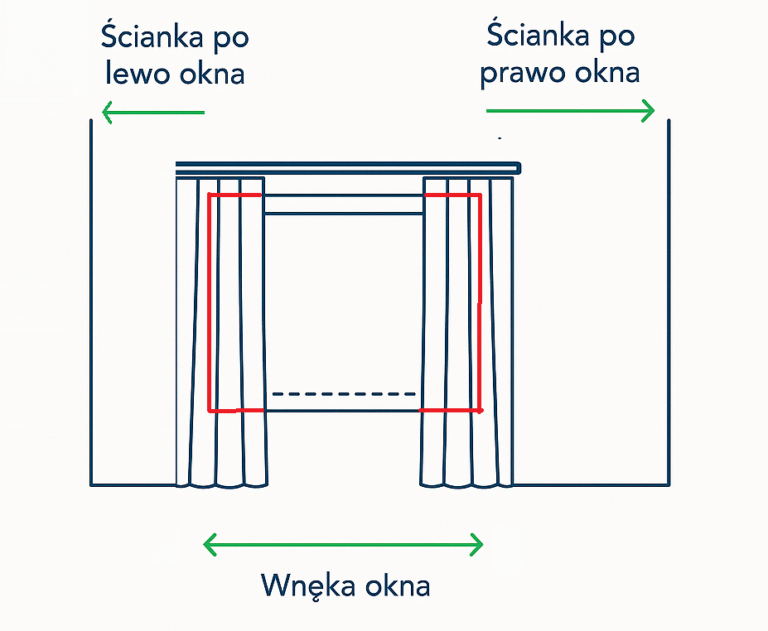 - wyznaczenie środka wnęki okiennej jako punktu podziału zasłon (czyli miejsca, gdzie zasłony się stykają po zasłonięciu),